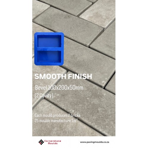 100x200x50mm double cavity smooth mould that produces a bevel paver brick. 25 molds will produce 50 bricks per m2.